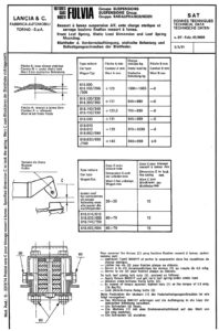 Schauen wir nun gemeinsam in den Ersatzteilkatalog der Serie 1 – 818. Die Tafeln 53 (Vorderfeder) und 56 (Hinterfeder) zeigen die Einzelteile und Zuordnung zu den Typen: Berlina – Coupé/Sport/1,6HF – 1,2HF/1,3HF. Vorne sieben Blätter, hinten sechs – unterschiedlich zwischen Berlinas und Coupé/HF/Sport.