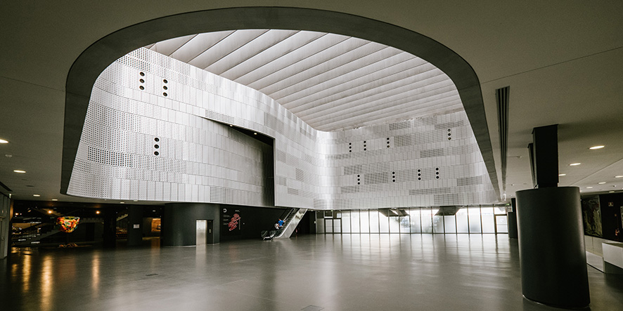 Tickets kann man online und an der Kasse vor der Eingangshalle um 15,- € kaufen, Senioren haben Sonderpreise, und man betritt die Halle, die ganz in Silber-Metall bis in den dritten Stock ausgekleidet ist und die Besucher mit Exponaten der laufenden Sonderausstellung begrüßt. Uns lachte dort u.a. ein Stratos Stradale in Blau an.