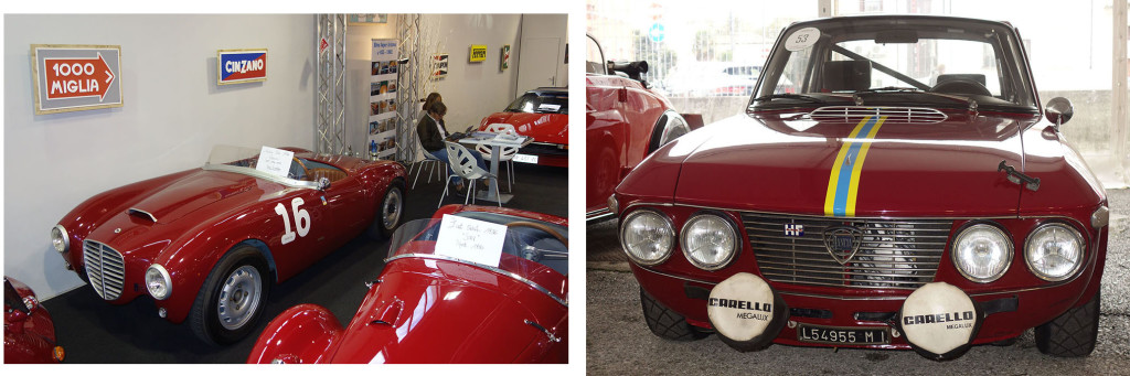 Zuerst „rasch“ die bestellten Teile und Bücher kaufen und hinterlegen, dann mit Ruhe durch die Hallen schlendern, um die ausgestellten Fahrzeuge auf Club- und Markenständen sowie das „Angebot“ an zu verkaufenden Fahrzeugen zu sichten. Grob formuliert: es gab auch andere Marken außer Alfa Romeo und Porsche, doch diese gingen fast unter. Kaum Zwischenkriegsfahrzeuge, erstaunlich wenige Lancias – auch die traditionellen „Renner“ Aurelia B20, Delta HF Integrale, Fulvia HF waren nur in geringer Anzahl zu sehen. Aber überraschend viele Flaminias – Berlinas, GTL, Convertibiles, aber nur ein PF Coupé. Ja, und die Preise?