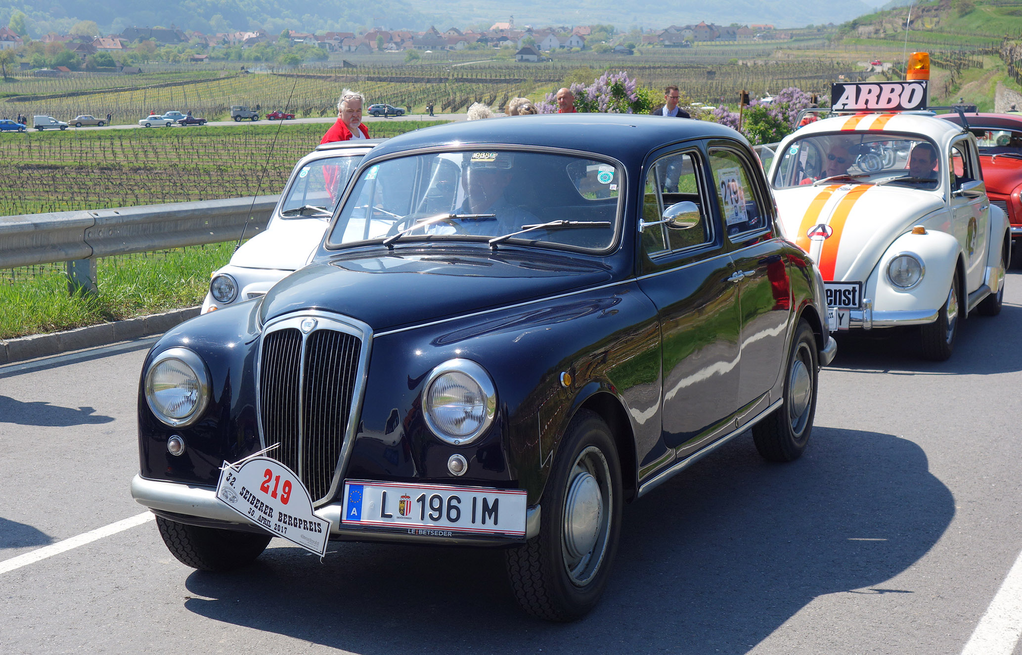 2017 waren nur drei Lancia am Start, alle erprobte Seiberer-Bergsteiger Manuel Mayer mit dem 1,3 S Coupé, Dr. Herbsthofer mit dem roten 1,3 S Coupé und Gerald Wöss – mit der Appia S1 Baujahr 1954. Lancianews hat vor einigen Wochen in der Rubrik „Technik“ vom erfolgreichem Abschluss eines Projektes aus dem Jahre 2006 berichtet. Thomas Ceschka hatte die kleine Limousine aus Triest geholt, doch der Eifer war bald erlahmt, in den beiden letzten Jahren wurden dann in Oberösterreich Nägel mit Köpfen gemacht, sodass die Appia im März 2017 typisiert und angemeldet wurde. Als erste Ausfahrt stand der Seiberer Bergpreis auf dem Programm. An- und Rückreise sowie die Bewältigung der Bergstraße wurden klaglos absolviert – die „kleine Aurelia“ machte Spaß und keine Sorgen.