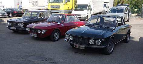 Treffpunkt und Startpunkt der herbstlichen Garagenausfahrt war wieder die Garage in Korneuburg, wo zwar keine „neuen“ Baustellen zu besichtigen waren, aber die alten nostalgisch betrachtet wurden. Sehr erfreuliche acht Fahrzeuge waren gekommen: Flaminia Coupé PF, Fulvia Coupé 1,2, Fulvia 1,3 HF, Fulvia Berlina 2C, Beta Coupé 2,0, Beta Montecarlo, Kappa Coupé 2,4 und Porsche Carrera. Eine Ardea und ein Flavia Coupé waren unpässlich und bleiben entschuldigt in ihren Garagen.