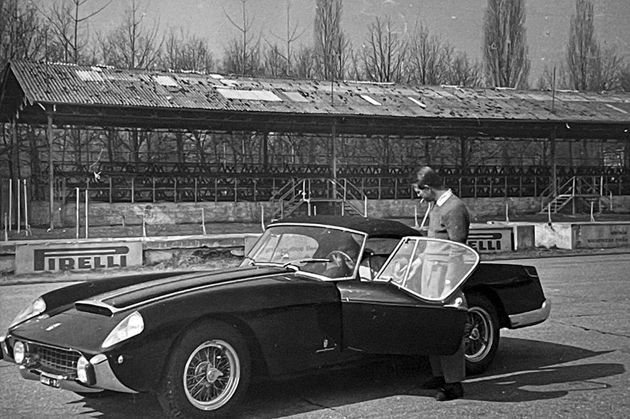 „As we sat on a grassy patch in front of the house a dark blue Lancia Flaminia arrived and the driver handed it over to Peter. Lancia at the time had a habit of offering loan cars to Grand Prix drivers as part of their publicity program, so they were happy to have this top of the range sedan. Sadly, not for long, as Enzo Ferrari ordered Peter to hand it back as he did not want one of his drivers driving a Lancia, and eventually gave Peter and Louise one of the early 250GT Cabriolets to drive. It is well known that Mr. Ferrari was not happy about having married drivers and they later moved to Monte Carlo where Peter had a boat.“