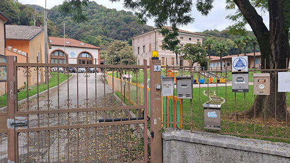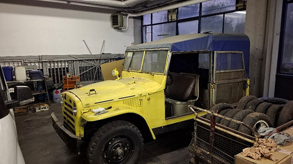 Zweite Station war Schio nördlich von Vicenza. Der erster Besichtigungstermin stand an. Typisch italienisch wurde eine Adresse angegeben, die nicht direkt beim Fahrzeug war. Der Besitzer kam verspätetet und führte uns zu einem nahegelegenen leerstehenden herabgekommenen Mehrparteienhaus der 1950ern mit ehemaliger Schmiede im Erdgeschoss. Ja – die Mutter wohnt noch im Gebäude!