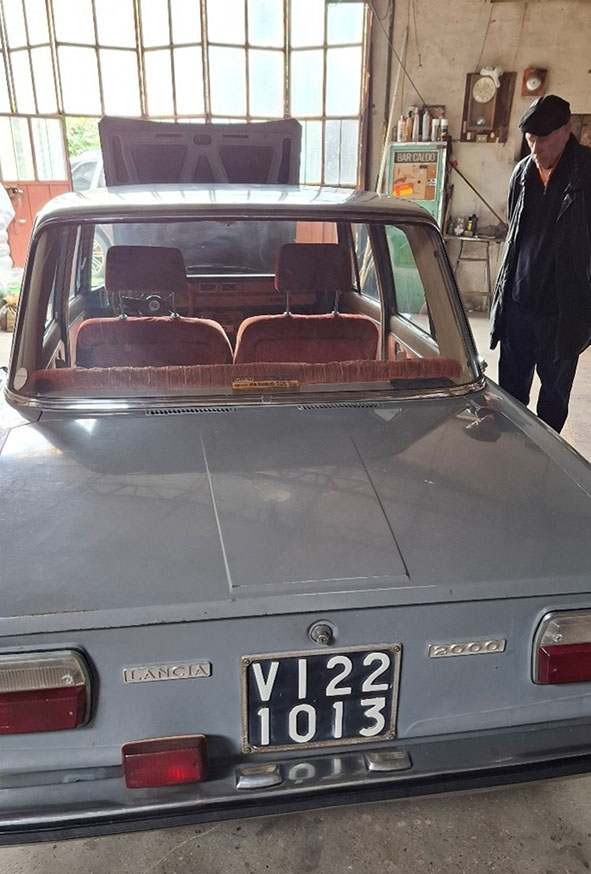 Dort erwarteten uns zwei Fahrzeuge. Eine Flavia LX und eine 2000er Berlina. Beide angeblich in gutem Zustand. Pünktlich eingetroffen im Herzen der Stadt. in einem Wohngebiet kam der Bruder des Besitzers aus einem das Ende der 1960er-Jahre erbauten Reihenhäuser. Bezeichnend ein typischer Lancisti. Herzliche Begrüßung und kurzer Rundgang. Elegant, freundlich, zuvorkommend, die richtige Gesprächsebene war gegeben.