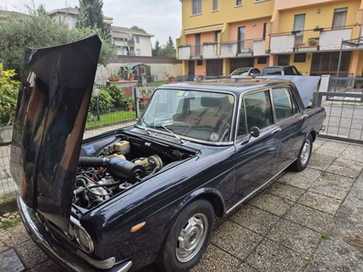 Die dunkelblaue 2000 Berlina war leider nicht so gut wie erwartet, außerhalb der Garage abgestellt. Ein schwer einzuschätzendes Fahrzeug. Versteckter Rost, ausgebleichter Lack, der sich unter einer Abdeckplane zu verfärben begonnen hat, gute Rücksitzbank, jedoch Vordersitze renovierungsbedürftig. Sehr schöne Farbkombination. Stoff gut erhalten, was sehr selten ist. Am Motor wurde viel gemacht, nur der Rost ist könnte ein Problem werden. Preislich zu hoch angesetzt, aber verhandelbar.