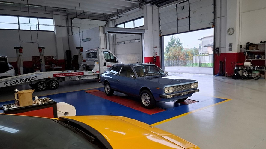 Die meisten Fahrzeuge waren leider am Weg nach Bologna zur Auto d’Epoca. Die Ardea und der 2000er leider ebenso. Im Showroom gab es zur Überraschung einen schönen Y10 und einen Gamma sowie einen Integrale in Martini Livre zu sehen. In der Werkstatt ein perfekter Beta HPE zum Servicieren im Kundenauftrag.