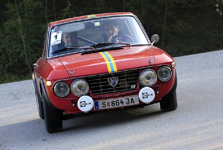 Anbei einige Bilder von unserer Herbstrallye LAUBDRIFTEN 2009, veranstaltet vom MVCS (Motor Veteranen Club Salzburg) Abteilung sportliche Fahrer. Ungefähr 30 Teams, Beginn im Salzburger Flachgau um 6 Uhr morgens, cirka 390 km durch Wald und Wiesen nach Oberösterreich und zurück, abends um 18 Uhr Siegerehrung. Eine anspruchsvolle Rallye mit toller Streckenführung. Leider haben wir (Mayrhofer/Schaffenrath Lancia Fulvia 1,6HF) uns total verhaut und konnten die Rallye nicht zu Ende fahren, weil wir Zeitkontrollen nicht rechtzeitig erreicht hatten. Die Bilder zeigen nur Lancisti mit dem Teams Russegger/Russegger auf Lancia Fulvia MonteCarlo (mit starkem Herz), Pretsch/Pretsch Lancia Fulvia 1,3 S und Mayrhofer/Schaffenrath Lancia Fulvia 1,6HF.