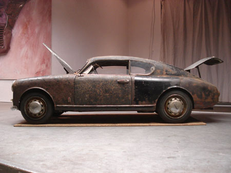 Man traut seinen Augen nicht – verkommene Lancia Aurelia B20 aus der Sammlung Baillon oder? Der der deutscher Grafiker / Kunsthandwerker / Techniker Martin Otto Lambert Heukeshoven nimmt die sorglose Vernachlässigung vorweg …