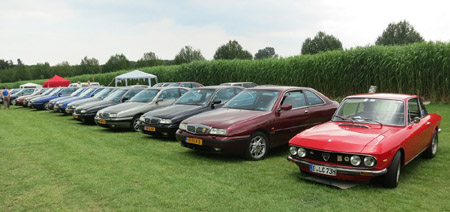 Der Lancia Club Deutschland (LCD) trägt die Lancia-Fahne seit Jahren beim Prestigetreffen der Pretiosen im Schloss Dyck voran. Heute hatte er überraschend sogar Unterstützung durch Fiat Deutschland, die wertvolle Stücke der Lancia-Geschichte präsentierten: D50 und 037!
