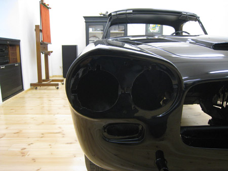 Fast ein Jahr habe ich für den Vorderbau der Alu-Karosserie benötigt, und dieser war dann weder beulenfrei noch an der Karosserie montiert. Daher habe ich mich auf die Suche nach einem Profi gemacht, der meine Flaminia-Karosserie fertig stellen und lackieren kann. Das war allerdings schwieriger, als neue Alu-Teile aufzutreiben. Zuerst habe ich in Italien die NEUE Motorhaube gefunden, dann erst den Carrossier!