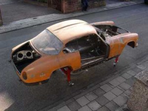 Inzwischen ist auch diese Farbe Geschichte, hier eine letzte Aufnahme, kurz vor dem Entlacken der Karosserie.